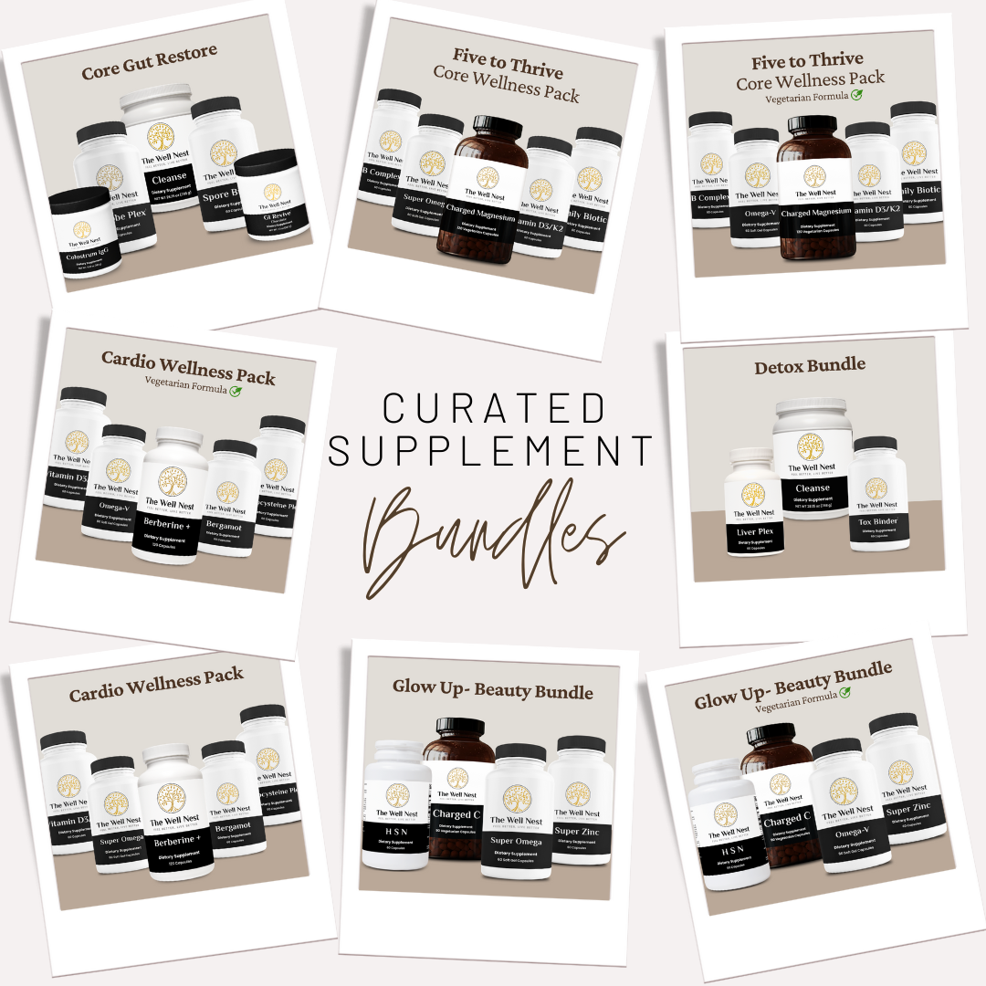 Fuel your health goals with our expertly designed bundles. Whether it’s heart health, gut support, detox, or glowing skin! Save time and get everything you need in one pack.