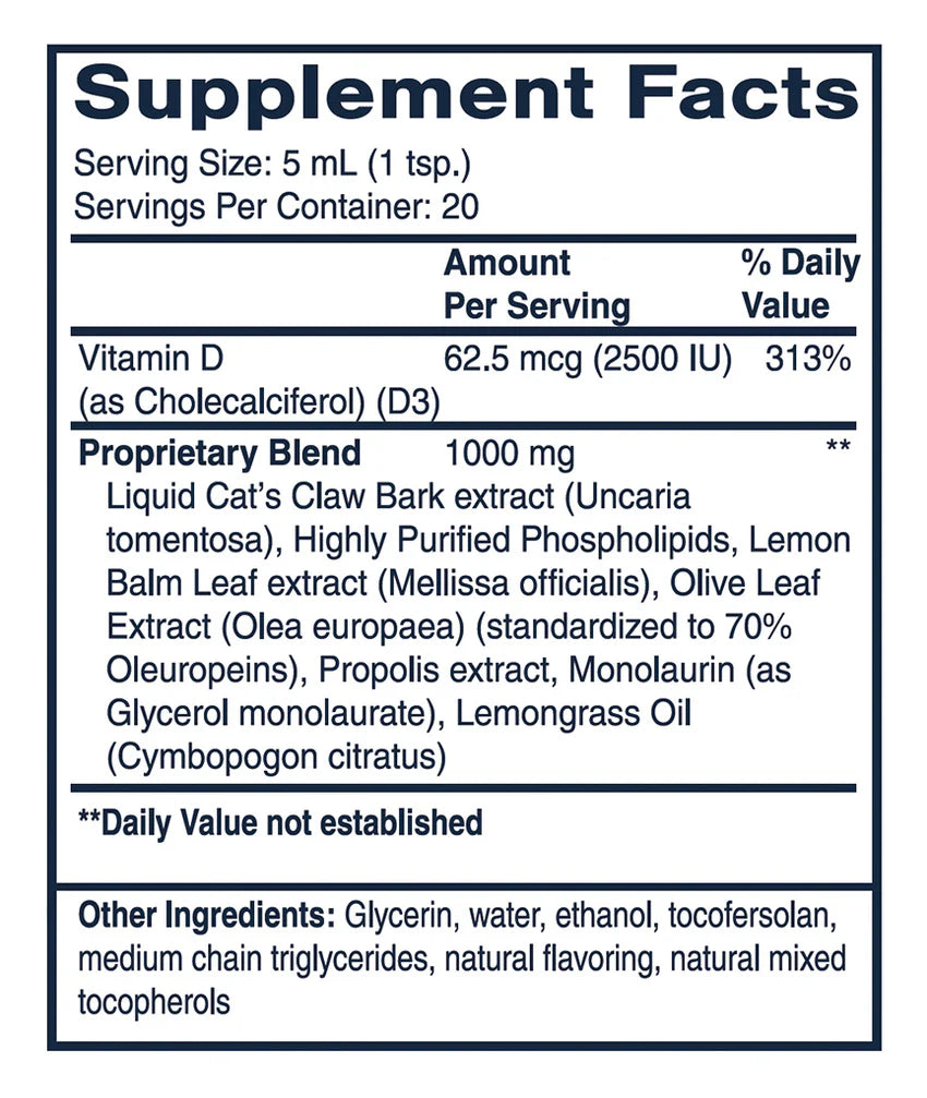 - Contains concentrated Uncaria tomentosa (Cat’s Claw) bark extract