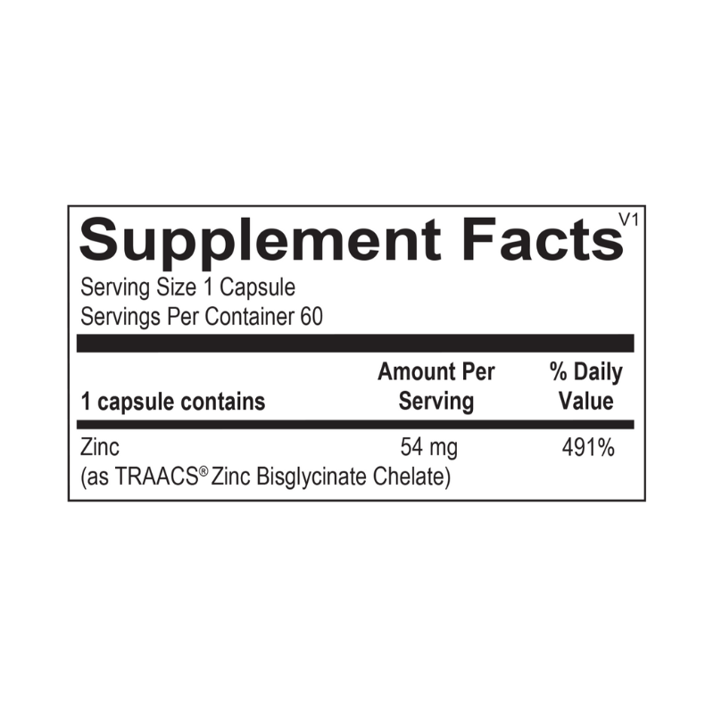 - Provides 54 mg of highly absorbed zinc bisglycinate chelate per serving.