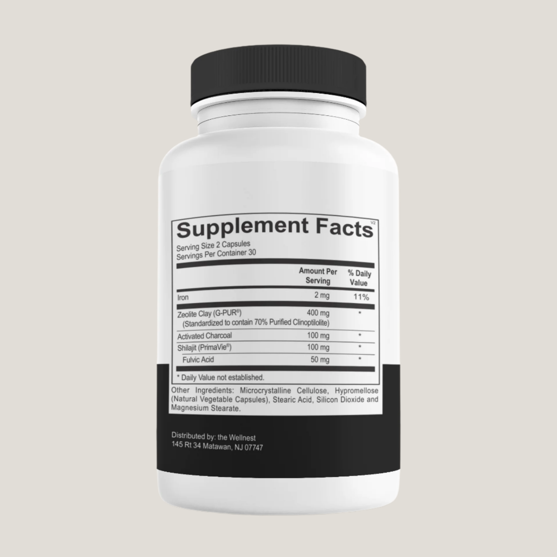 - Contains purified zeolite (G-PUR®), activated charcoal, and shilajit (PrimaVie®) for broad-spectrum binding capacity.